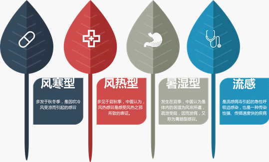 应对感冒,首先要学会区分不同类型的感冒,因为它们在用药上也是不同的。如风寒型感冒,可选用的药物有伤风感冒冲剂、感冒清热冲剂等;风热型感冒可选用抗病毒口服液、感冒退热冲剂、板蓝根冲剂等。除此之外,还可以按照具体症状来选择相应的药物。下面安安用一张图来简单阐述一下不同类型的感冒。