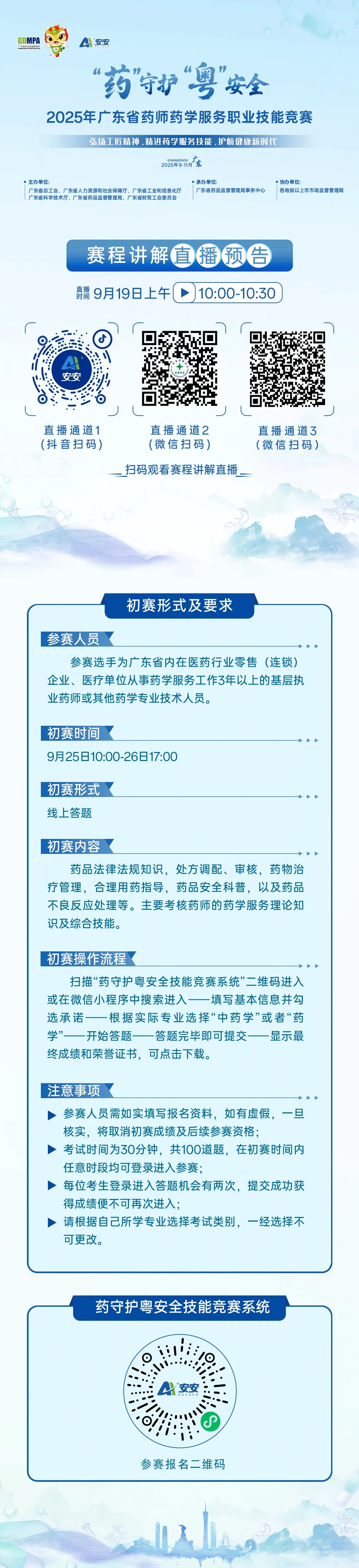 2025年广东省药师药学服务职业技能竞赛邀您报名!直播讲解戳→