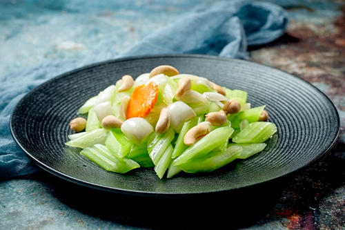 西芹最早从国外引进,因其质地脆嫩,肉厚汁多,有芳香气味而受到人们喜爱。西芹富含膳食纤维、矿物质及多种维生素,可作菜肴食用,也可榨汁饮用,有辅助降压降脂的作用。