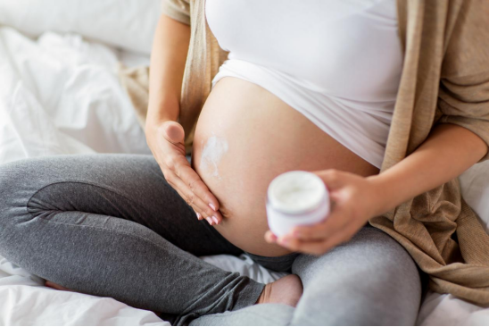 随着孕期腹部的迅速扩张,皮肤的弹性纤维和胶原蛋白纤维被过度拉伸,导致皮肤出现小而凹陷的条纹,常见于腹部,也可能出现在臀部、大腿和胸部。预防妊娠纹,准妈妈可以通过控制体重增速,减少皮肤过度拉伸的风险。此外,选择温和的护肤乳、霜或油类产品,每日轻柔按摩腹部、臀部等易出现妊娠纹的部位,既能为肌肤补充水分,缓解干燥引起的瘙痒,还可增强皮肤弹性,降低妊娠纹的出现。