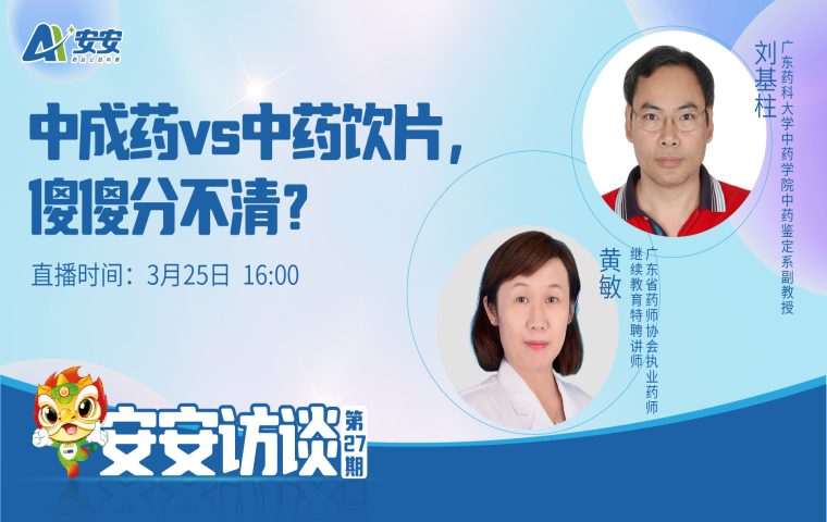 近期,安安网邀请到广东药科大学中药学院中药鉴定系副教授刘基柱、广东省“十佳百优”优秀执业药师黄敏,跟我们分享一下关于中成药、中药饮片的相关科普知识。