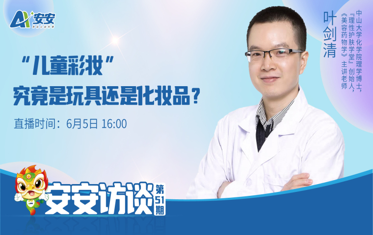 国家药监局推出“小金盾”标识以规范儿童化妆品市场,但消费者对此认知不足,维权之路亦充满挑战。安安网将邀请中山大学化学院理学博士,“理性护肤学堂”创始人,《美容药物学》主讲老师叶剑清做客安安网直播间,为我们剖析乱象根源、科普安全标准,并指导家长如何明智选购和维权。