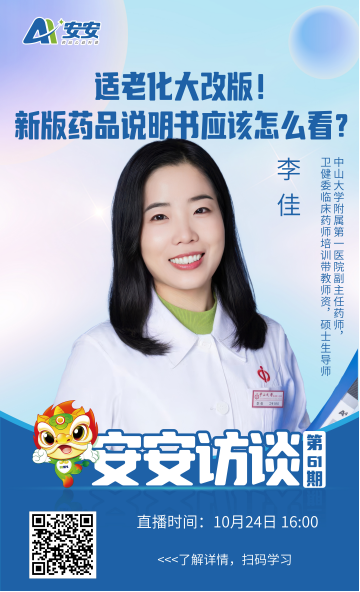 为了帮助公众更好地了解和应用新版药品说明书,本期安安访谈特别邀请中山大学附属第一医院副主任药师、卫健委临床药师培训带教师资、硕士生导师 李佳,为您深度解析新版药品说明书的“适老化密码”,现场传授用药安全锦囊!